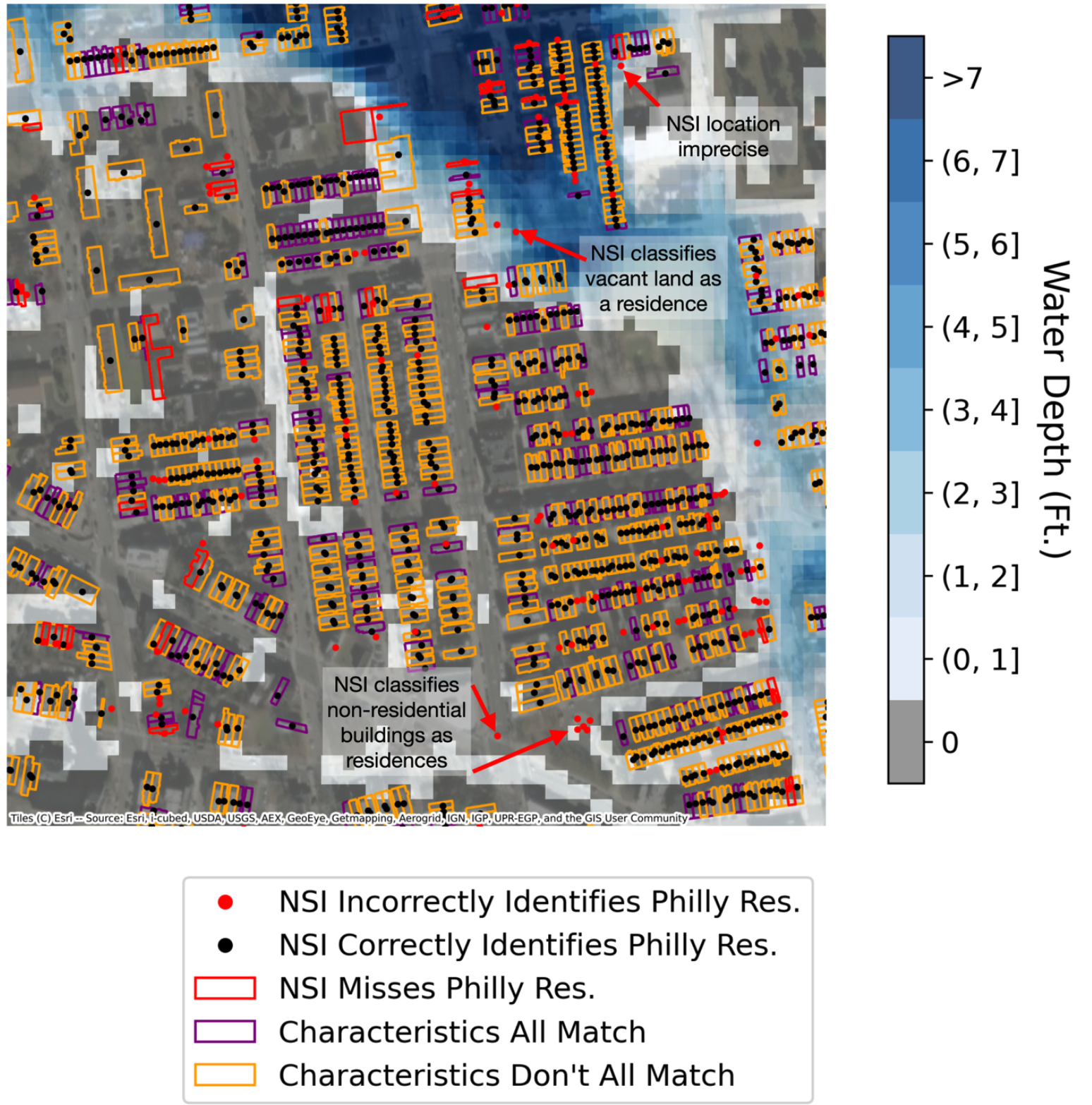 Flood-risk assessments inform consequential public decisions. These assessments increasingly use large-scale building inventories that offer granular details but come with little quality assurance. The U.S. Army Corps’ National Structure Inventory (NSI) is a prominent example. The Corps explicitly recommends that users evaluate data quality and adjust attributes as necessary. However, many studies skip this step. This raises the questions: How accurate is the NSI and how do any errors influence risk assessments and decisions? Here we use a case study for the city of Philadelphia, Pennsylvania comparing NSI-based damage estimates against estimates with highquality, feature-rich local building data under an ensemble of flood scenarios. The nearly ubiquitous practice of adopting the NSI without refinements can systematically distort flood damage estimates with potentially drastic implications for resource allocation decisions. Using the NSI to rank census tracts by damage-a common metric for prioritizing federal disaster funding-generally misclassifies one-fifth of tracts regarding their priority status. Simple refinements, such as correcting building locations, can drastically reduce classification errors, leading to correct identification of all tracts with respect to priority status in all but one flood scenario. Our findings demonstrate how the use of unrefined nationwide building inventories can compromise risk assessments and mislead resource allocation. We provide actionable guidance for enhancing inventory reliability to improve risk estimation and decision analyses.